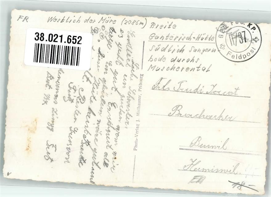 Gantrisch, Feldpost Geb.Fus.Kp. II/37 Ganterischhütte
