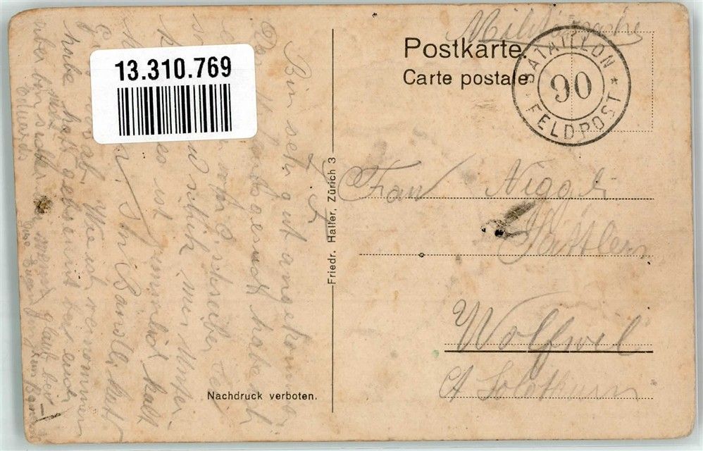 Gebrauchsspuren Feldpost Bataillon 90 Erinnerung den Bundespräsidenten 1914-1916