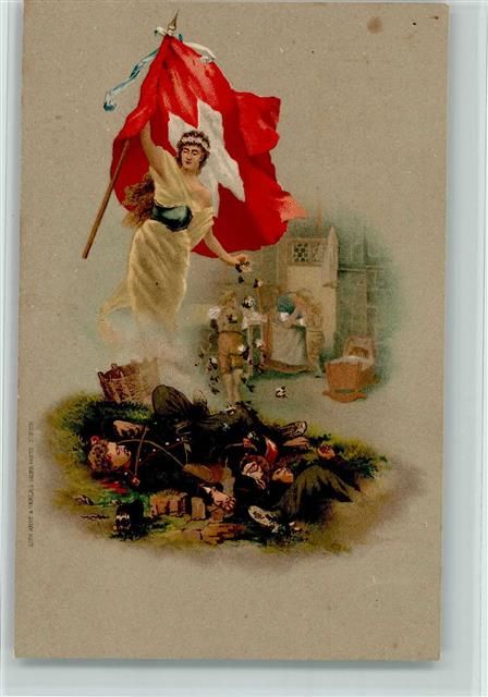 Gefallene Soldaten, Helvetia streut Blumen AK Helvetia
