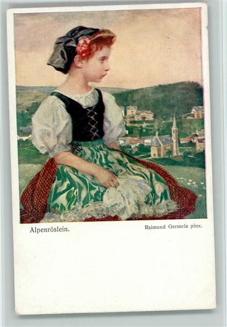 Gemälde von Raimund Germecla - Alpenröslein - Trachten 1913 AK Wiener Kunst Tracht Schweiz