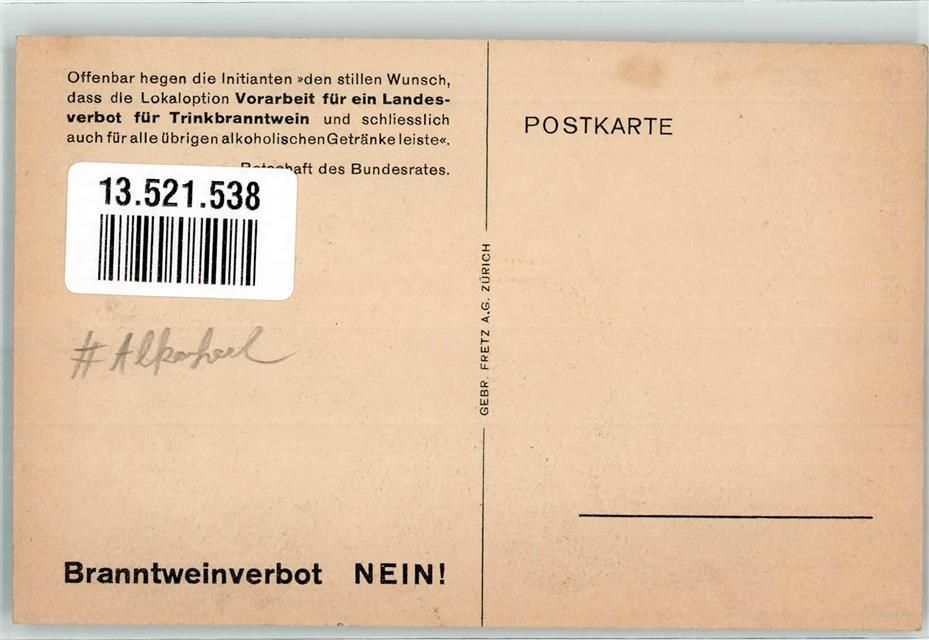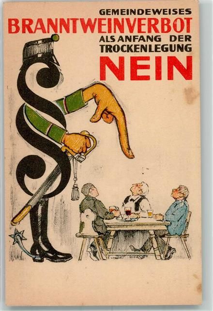 , Gemeindeweises Alkohol-Verbot als Anfang der Trockenlegung Branntweinverbot NEIN