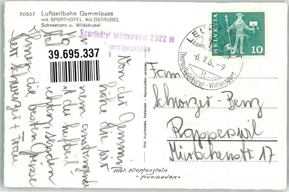 Gemmipass Wallis Foto AK Seilbahn Hotel Wildstrubel Hüttenstempel Foto Klopfenstein