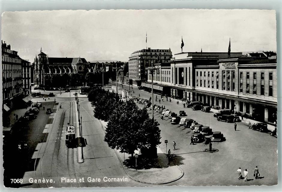 Genève Genf Place et Gare Cornavin Oldtimer Tram Bahnhof Schweiz