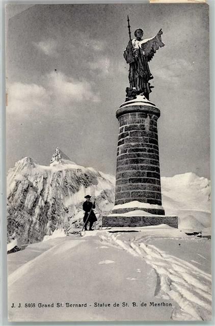 Grand-St-Bernard Gebrauchsspuren Statue de St Bernard de Menthon hiver