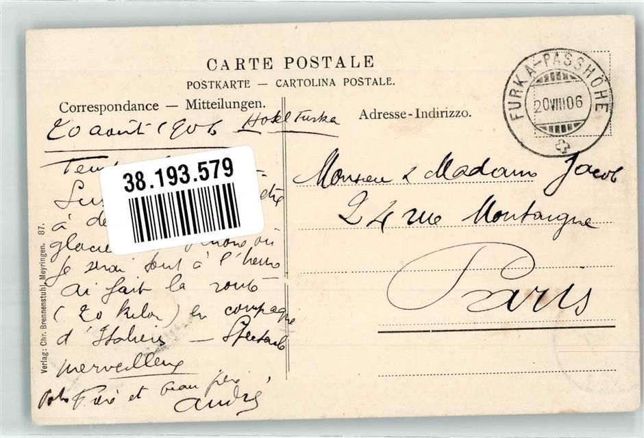 Grimsel 1906 Foto AK Rhonegletscher Furkapass Briefmarke Bildseite