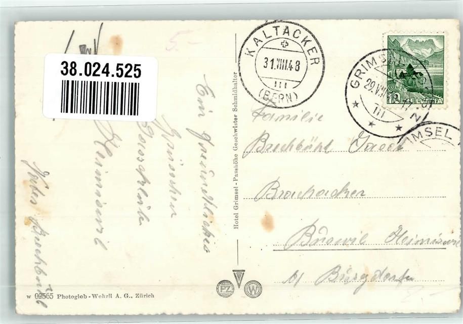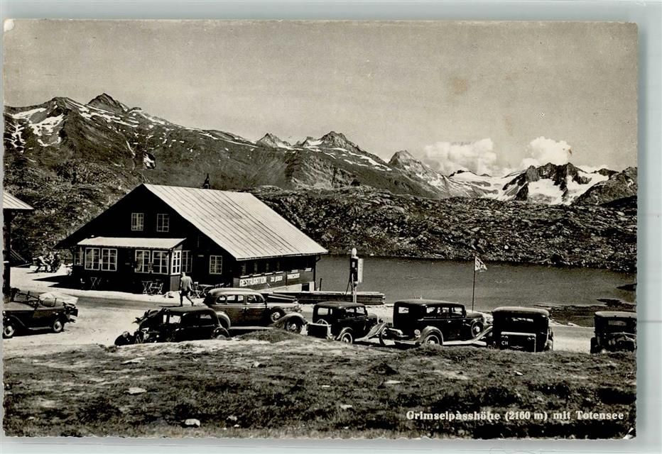 Grimsel 1948 Foto AK Gasthaus Grimselpasshöhe Auto