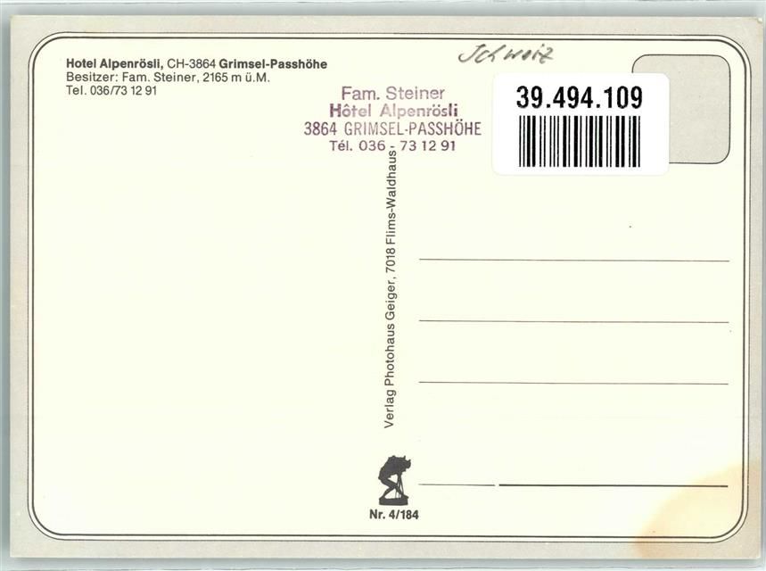 Grimsel, Hotel Alpenrösli Passhöhe Hüttenstempel