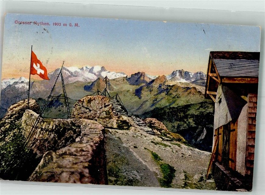 Grosser Mythen 1918 Foto AK Aussichtspunkt Hütte