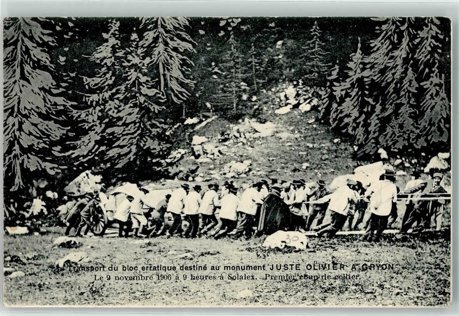 Gryon, Transport du bloc erratique destine au Monument Juste Oliver