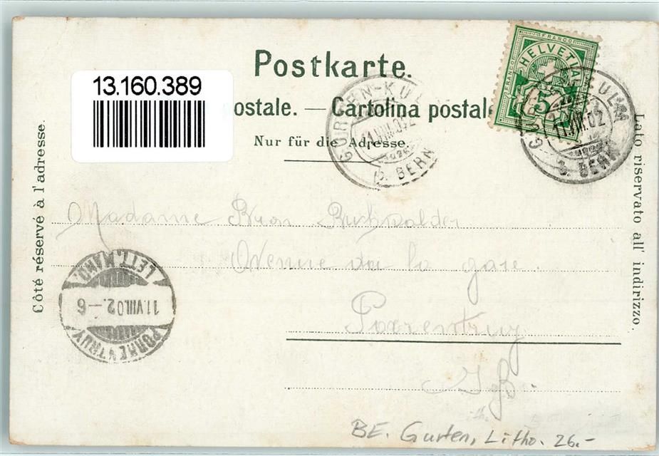 Gurten Kulm 1902 Lithographie Kurhotel mit Stammhaus Passepartout Bäume