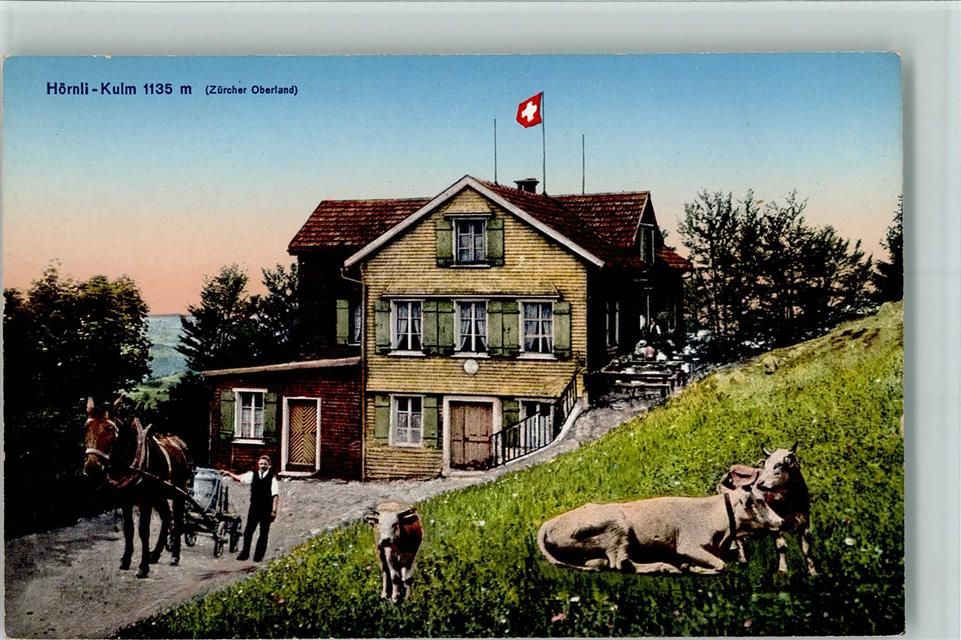 Hörnli ZH - Berggasthaus Pferdefuhrwerk Kühe