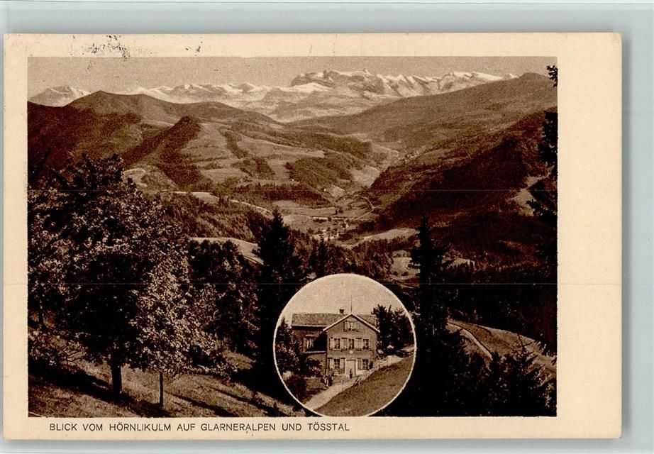 Hörnli ZH - Blick vom Hörnlikulm auf Glarneralpen und Tösstal Hüttenstempel