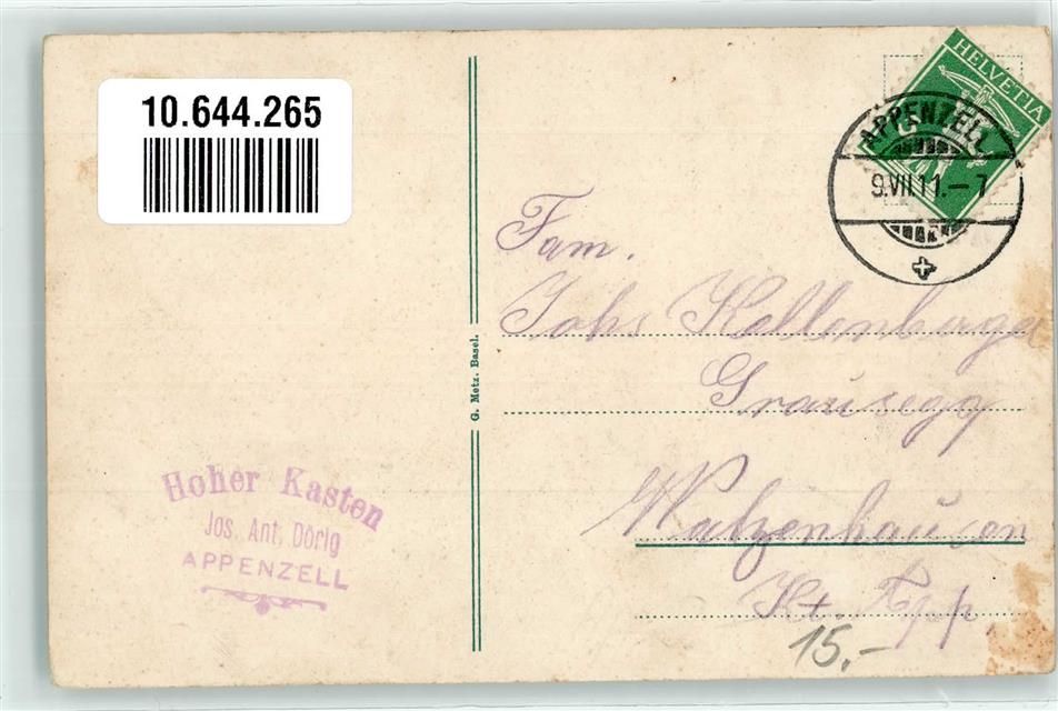 Hoher Kasten 1911 Gebrauchsspuren Hotel Hohen Kasten Lithographie