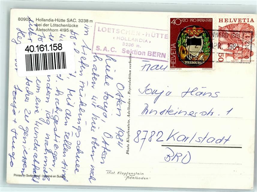 Hollandiahütte, Aletschhorn Hüttenstempel AKU2