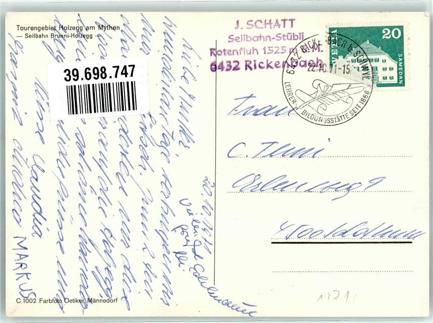 Holzegg, Seilbahn Brunni Mythen Hüttenstempel
