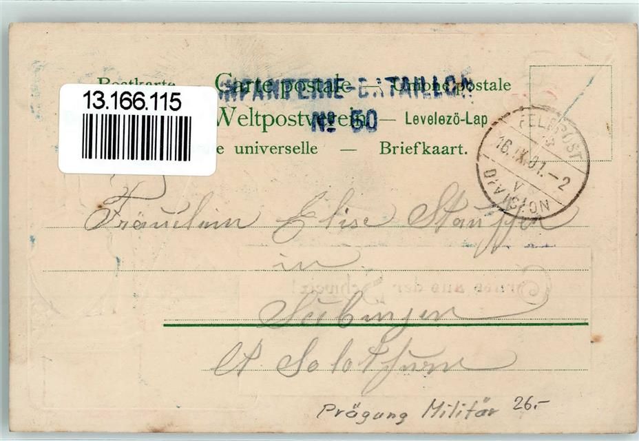 Jugendstil Helvetia 1901 Lithographie / Prägedruck