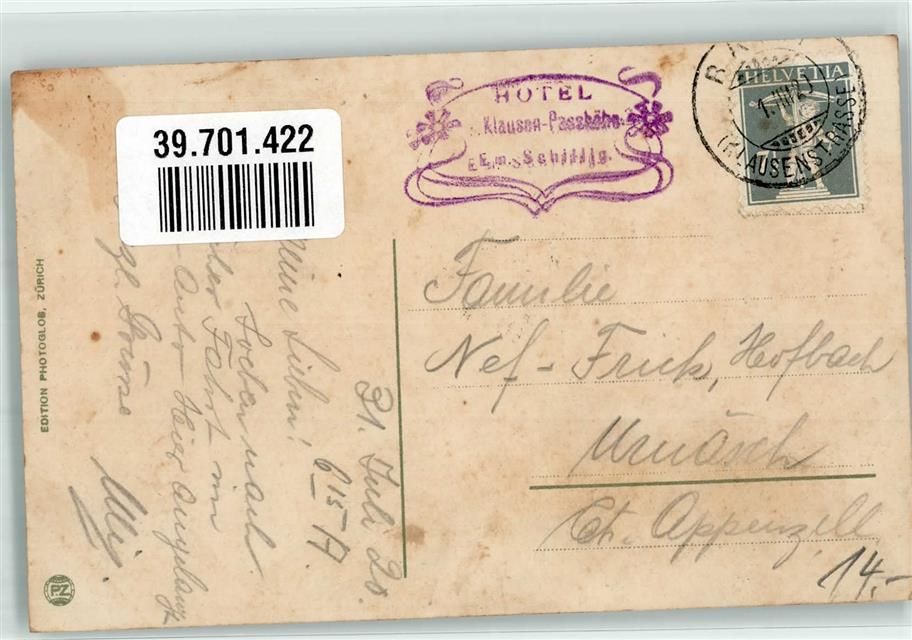 Klausenpasshöhe 1920 - Hotel Hüttenstempel