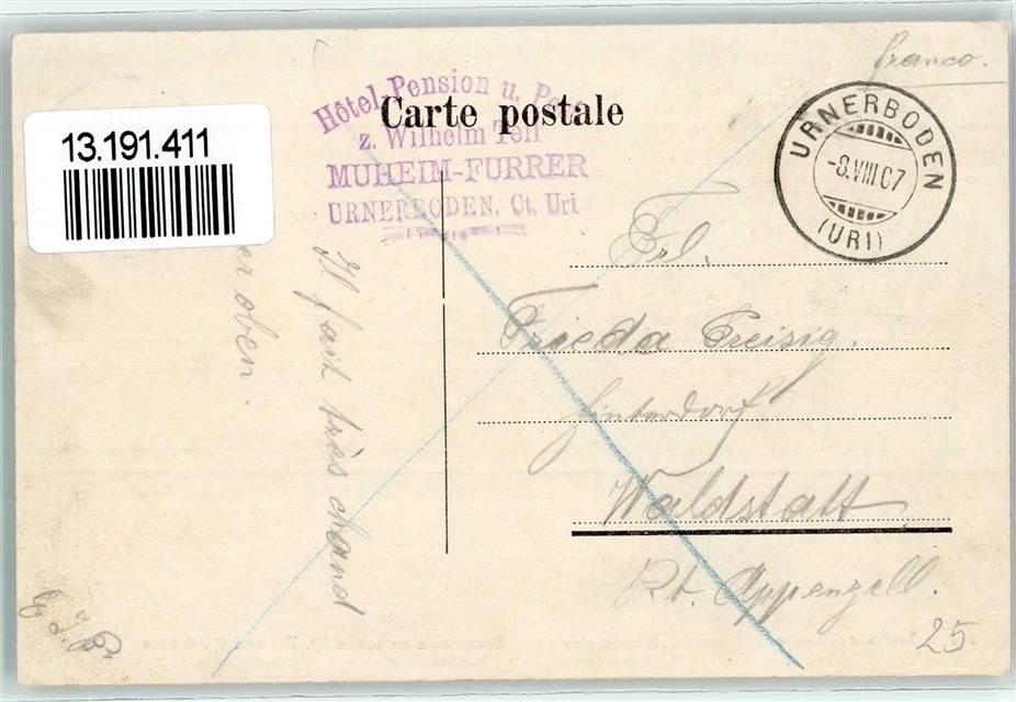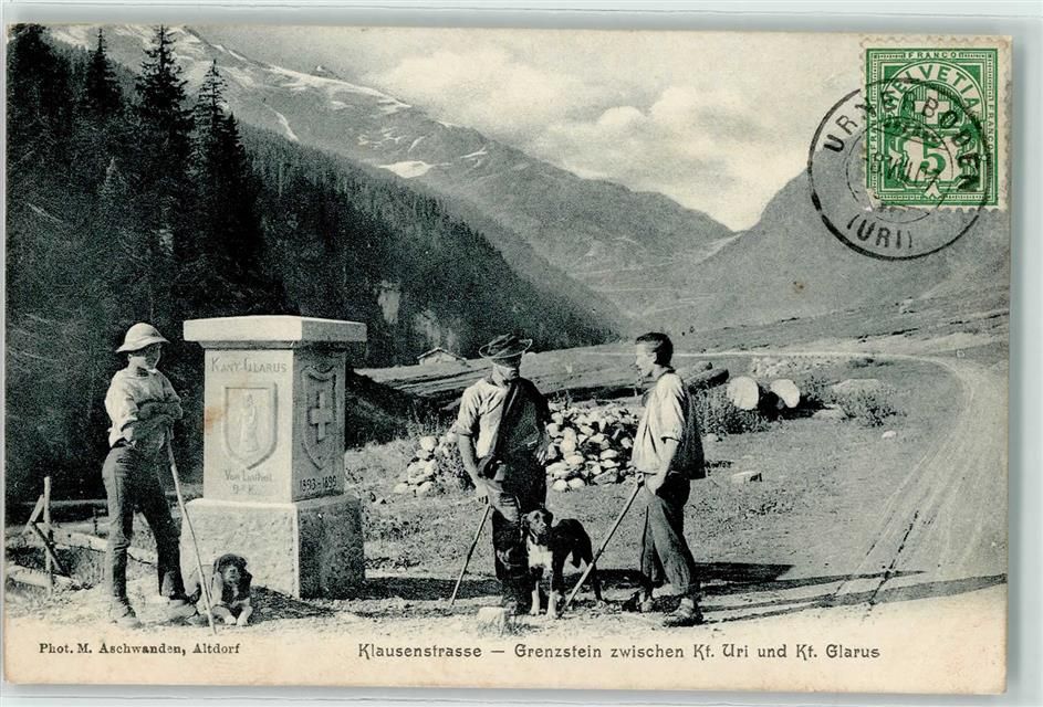 Klausenstrasse 1907 - Grenzstein zwischen Uri und Glarus