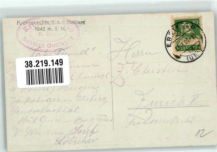 Kröntenhütte 1926 Foto AK Hüttenstempel