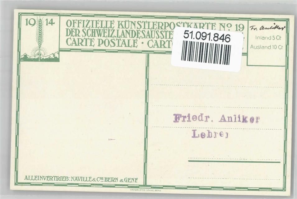 Künstler -Karte, signiert Friedrich Anliker Motiv Schweiz