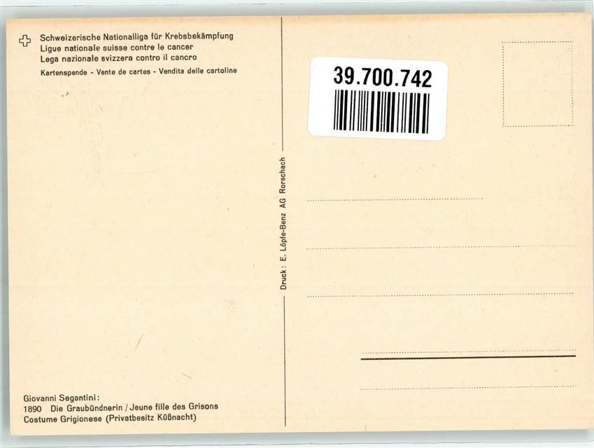 Künstlerkarte Die Graubündnerin sign. Segantini