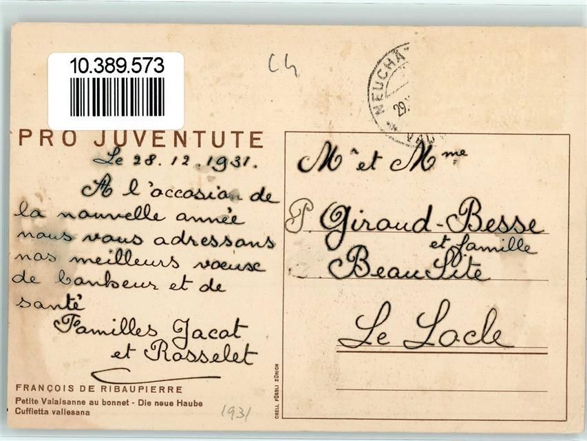 Künstlerkarte Francois de Ribaupierre Pro Juventute Schweiz 1931