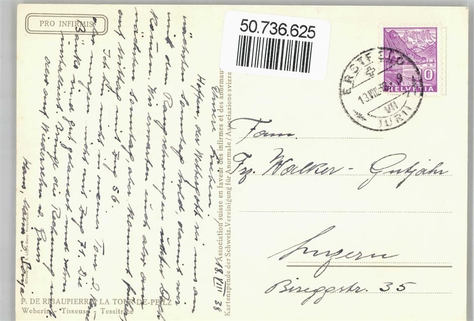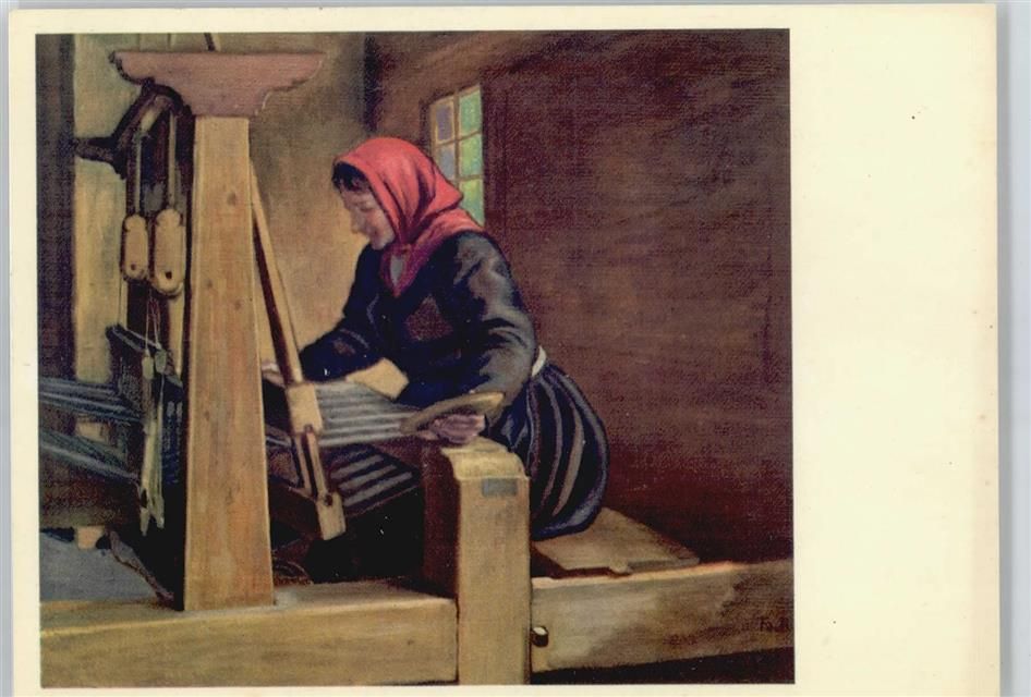 Künstlerkarte, Frau am Webstuhl Pro Infirmis Schweiz