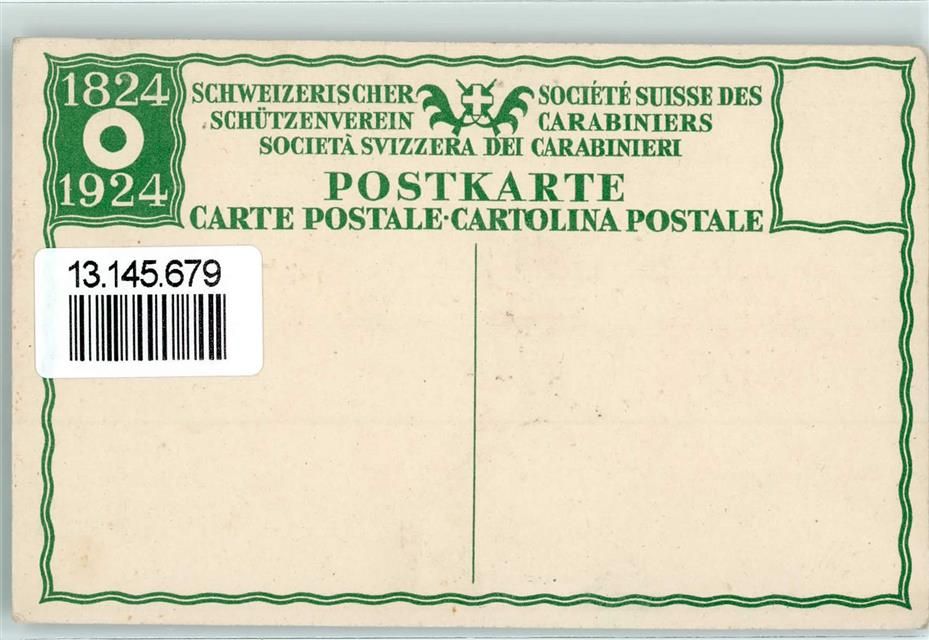 , Schweizerischer Schützenverein Societa Svizzera dei Carabinieri Mann mit Gewehr Zielscheibe sign J. E. Hugentobler