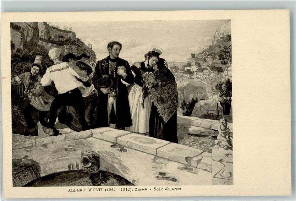 Künstlerkarte sign.Welti Albert Hochzeitsabend Serie A3 Musee D Art et D Histoire