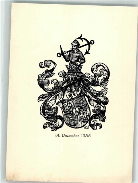 , Wappen Mann mit Schiffsanker sign. K.J.