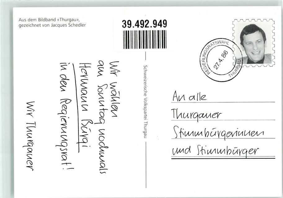 Künstlerkarte Zeichnung J. Schedler Greggenhüsli Bildband