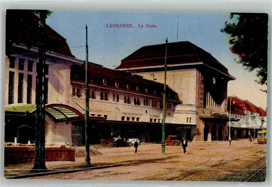 Lausanne Losanna Bahnhof Straßenbahn Bahnhof Schweiz Foto AK
