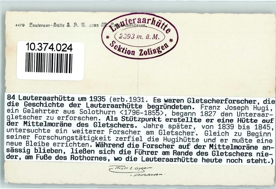 Lauteraarhütte, Beschreibung aufgeklebt Hüttenstempel