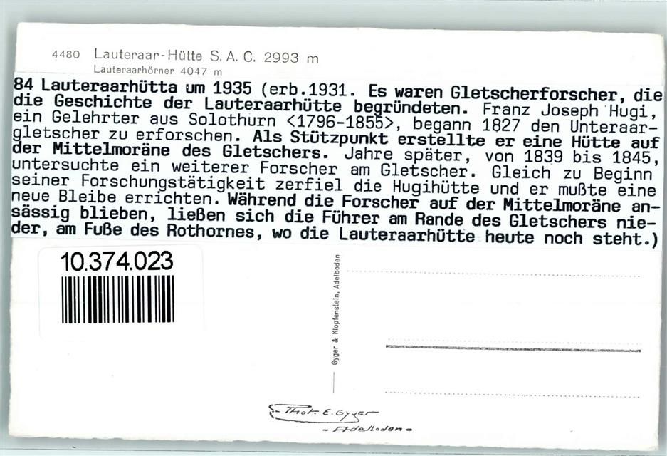 Lauteraarhütte, Beschreibung aufgeklebt