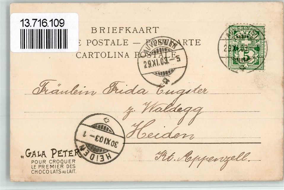 Le Lys Gala Peter Chocolats Jugendstil Werbung Lithographie Schokolade 1903 BOAKC
