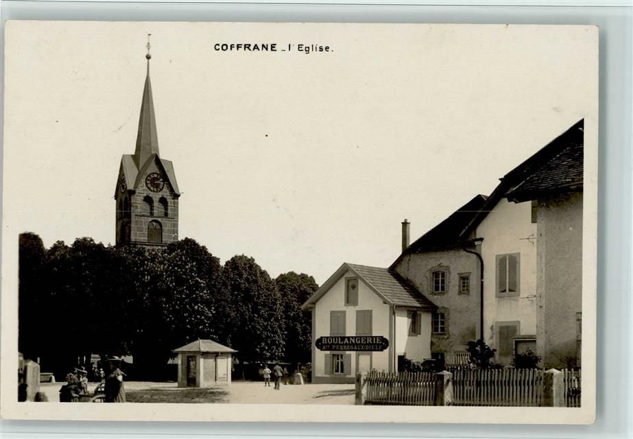 l´Eglise 1929 Foto AK Coffrane I Eglise,Straßenansicht mit Kirchturm, gute Erhaltung AK