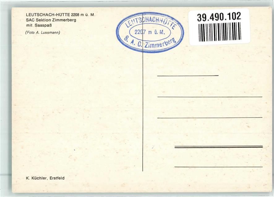 Leutschachhütte Foto AK Winter Leutschachhütte SAC Sektion Zimmerberg Saaspass Hüttenstempel Foto Lussmann