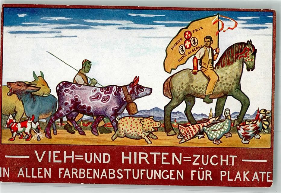 Lithographie / Künstlerkarte Beruf Bauer Vieh- und Hirten-Zucht Esel Schwein Pferd Enten