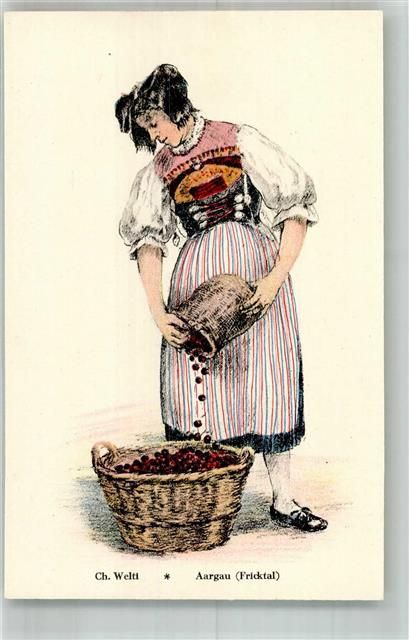 Lithographie / Künstlerkarte Tracht Frau Aargau