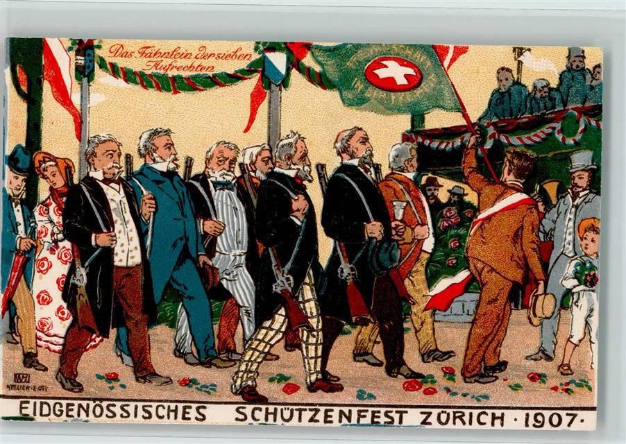 Lithographie Offiz. Festpostkarte - Schützenfest 1907 - Kunstanstalt Müller