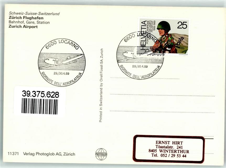 Locarno Flughafen Swissair Maschine SBB Eisenbahn Tag der Aerophilatelie Ort lt. Stempel Phila Schweiz 1989 Ganzsache