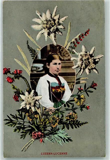 , Luzerner Trachtenfrau mit Edelweiss Verzierung