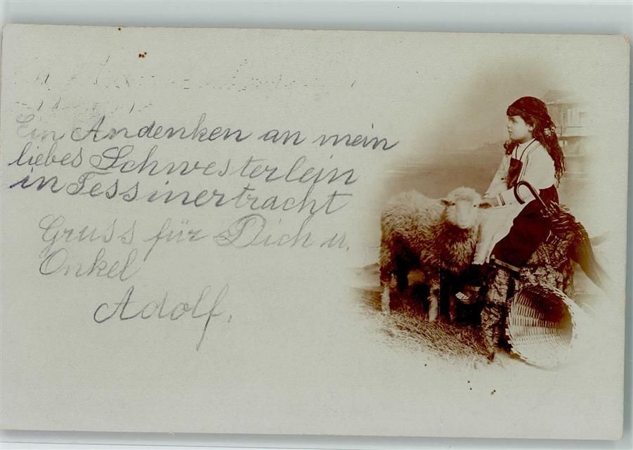 Mädchen in tessiner Tracht mit einem Schaf - Privatfoto AK Tracht Schweiz 1901 Foto AK