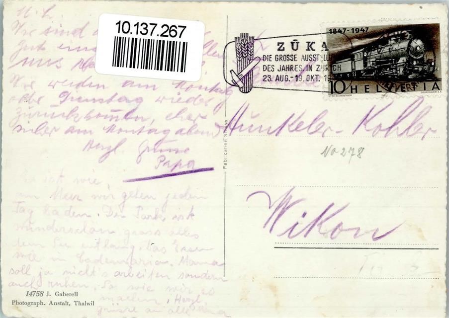 Mammern Nr. 14758 Gaberell - Kuranstalt AK Gaberell 1947 Gebrauchsspuren