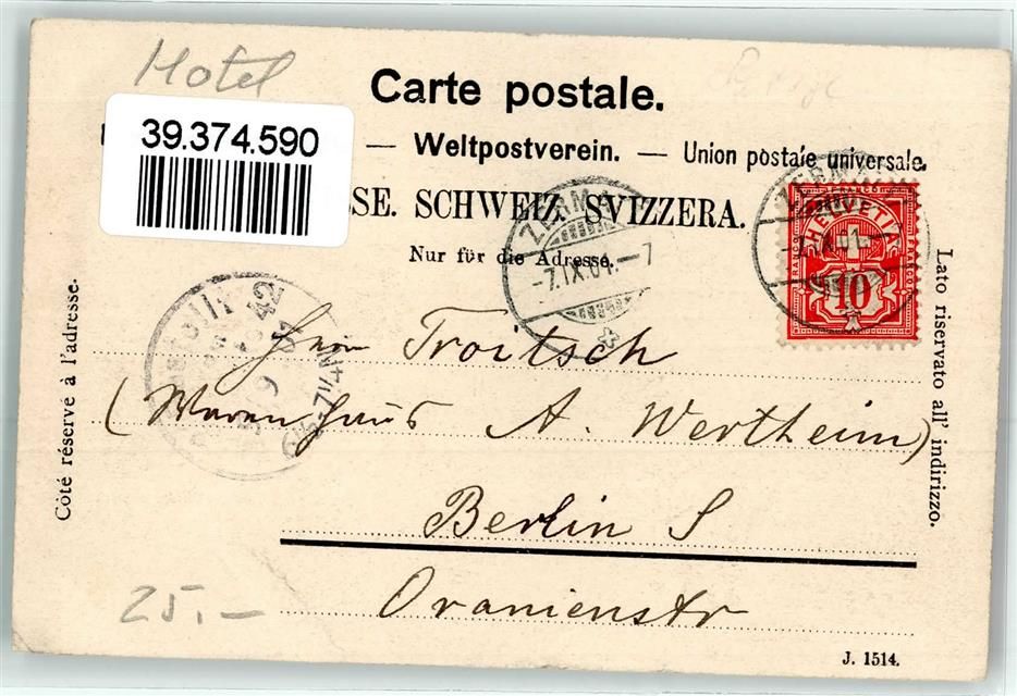 Matterhorn VS 1901 Gebrauchsspuren Hotel Gornergrat