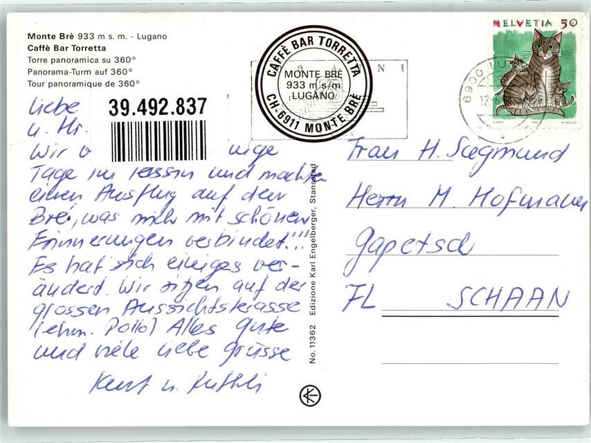 Monte Bré, Gasthaus Torretta Hüttenstempel Panoramaturm