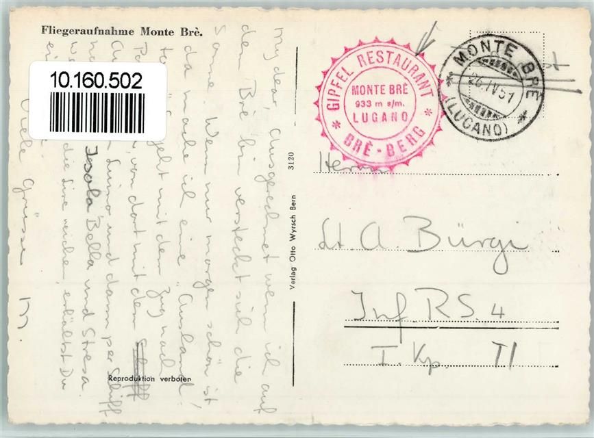 Monte Bre Lugano, Luftaufnahme Restaurantstempel