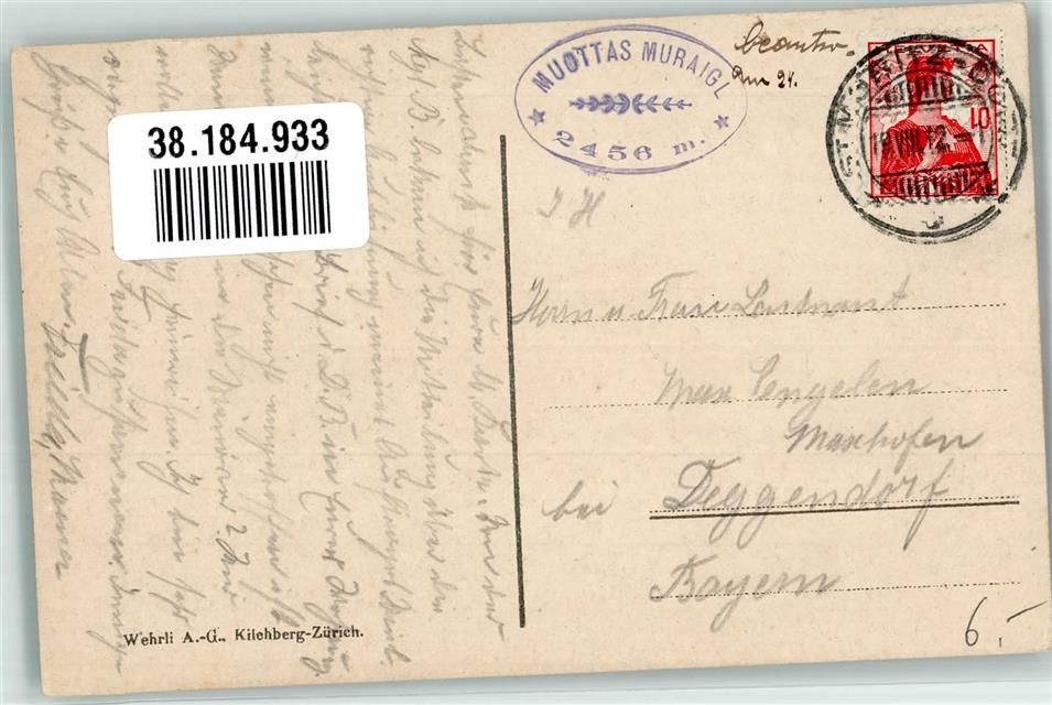 Muottas Muraigl 1912 Foto AK Hüttenstempel