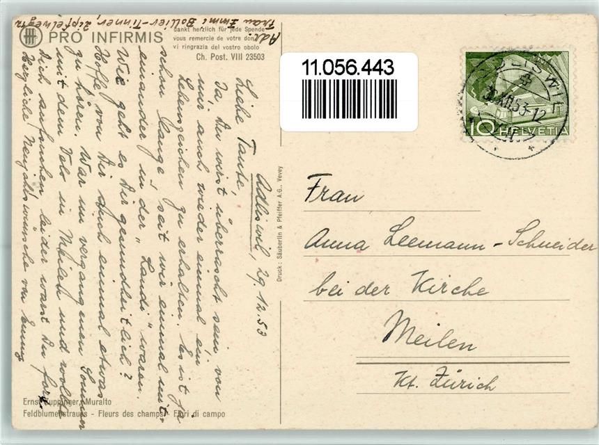 Muralto Feldblumenstrauss in Vase E. Zuppinger Pro Infirmis Schweiz Künstlerkarte
