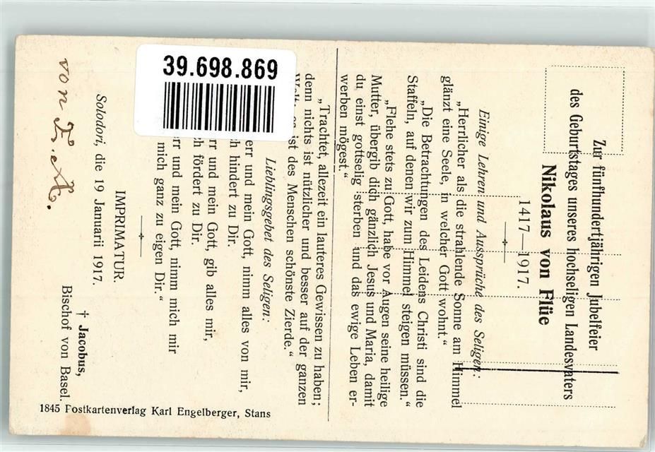 , Nikolaus von Flüe Mönch 500 Jahrfeier